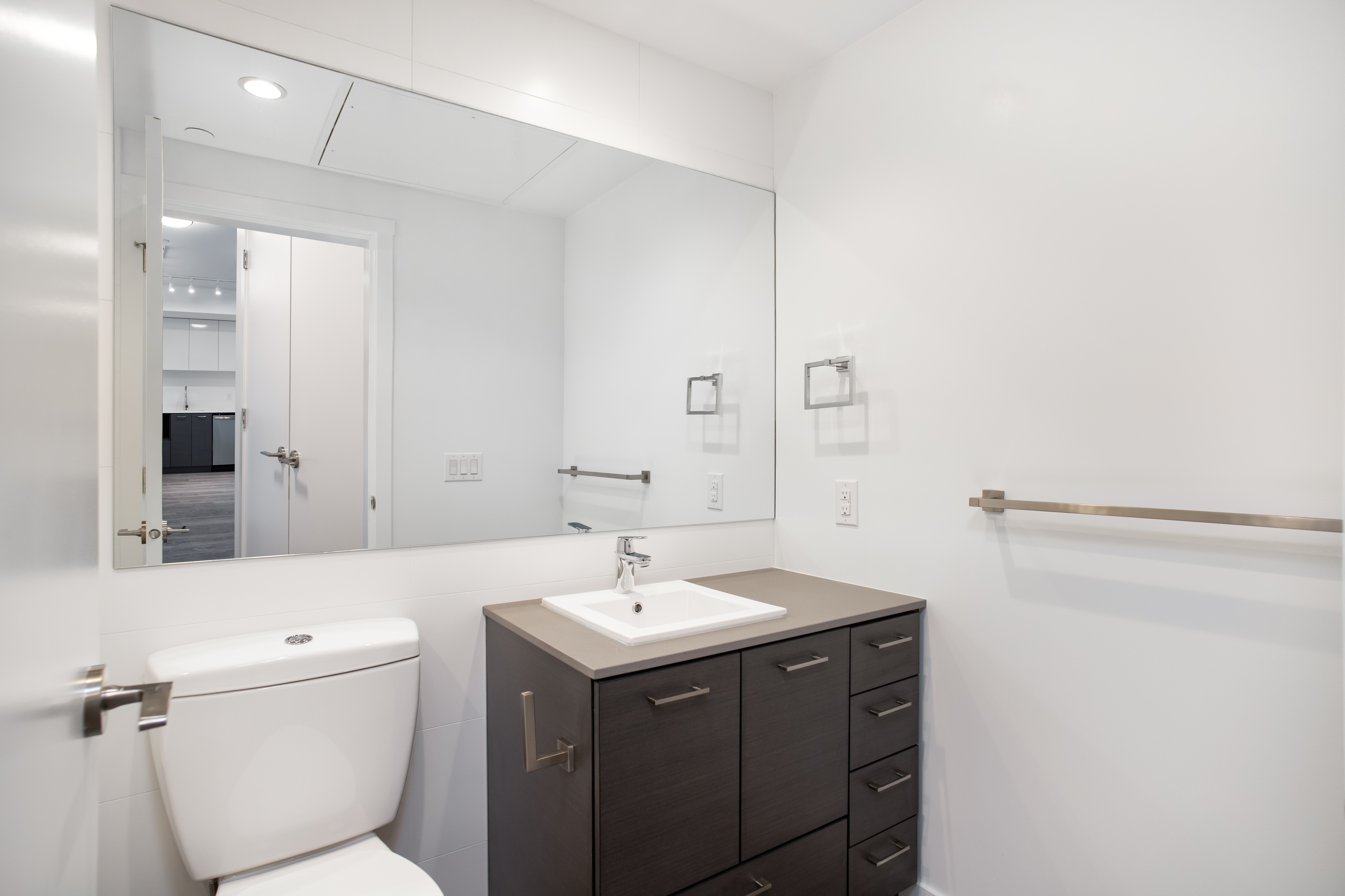 Unique to the top floor, our D5 plan is expertly laid out. With rooms on opposing sides, and two bathrooms, this floor plan is the perfect home those looking for an extra bit of privacy. The large, 300sqft terrace looks East over Emerson street, and offers quiet views of the mountains. This corner suite features an L-shaped kitchen to maximize countertop space while leaving you with a flexible, open concept. A full stainless-steel appliance package finishes this quality kitchen. Enjoy the comfort of in-suite laundry, deep soaker tubs, and plenty of closet space.